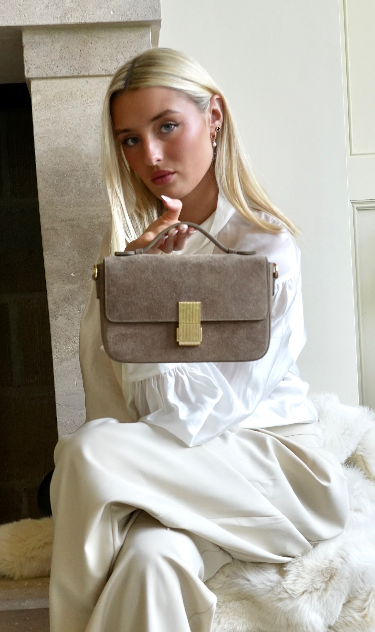 The Flora Top Handle Suede BagMink