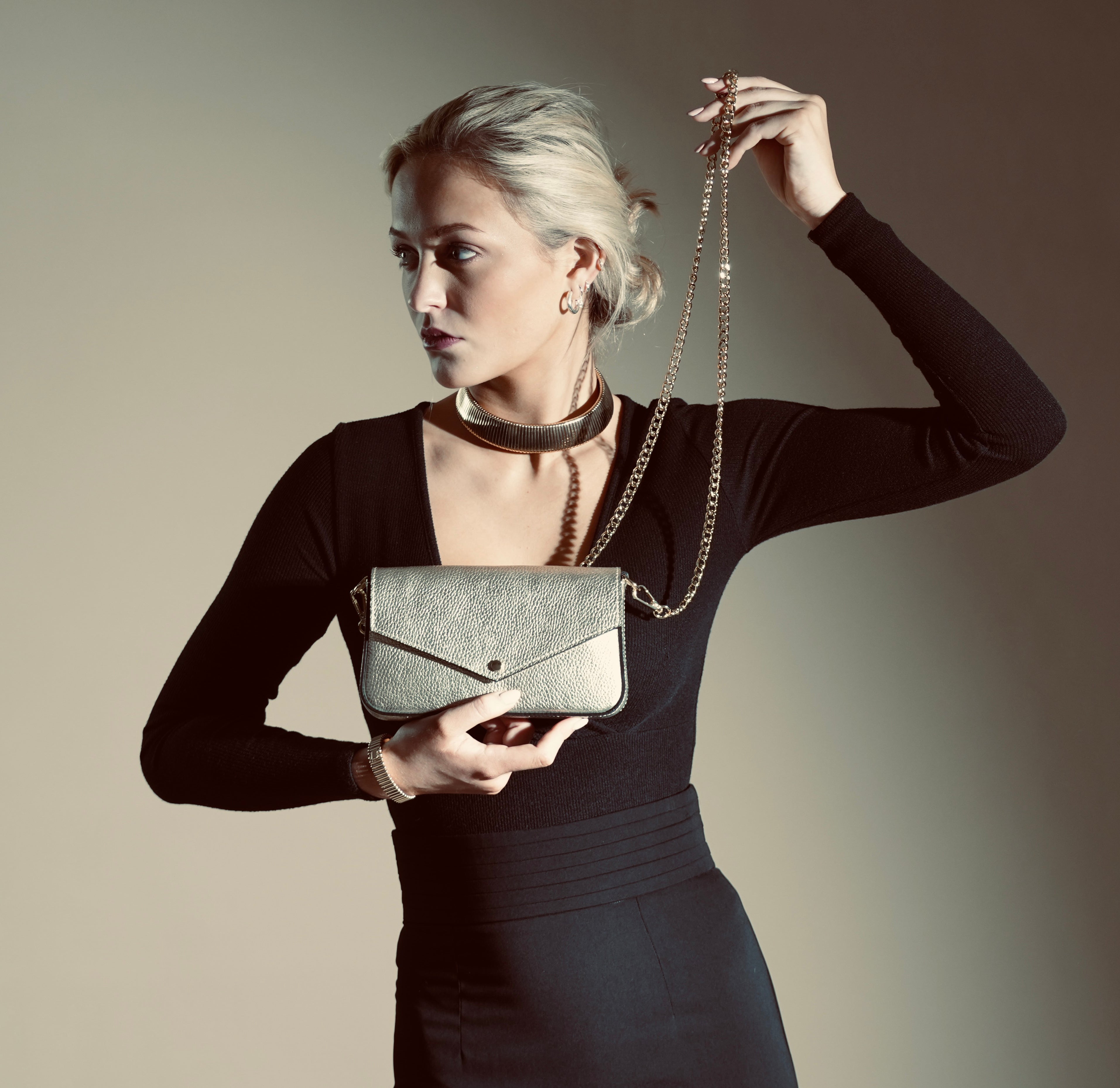 The Munro Bag combines elegance and adaptability. Crafted in premium leather, it features a removable gold chain and leather strap, allowing seamless transition from shoulder or crossbody to clutch. Generous enough for daily essentials, it’s practical luxury at its finest.