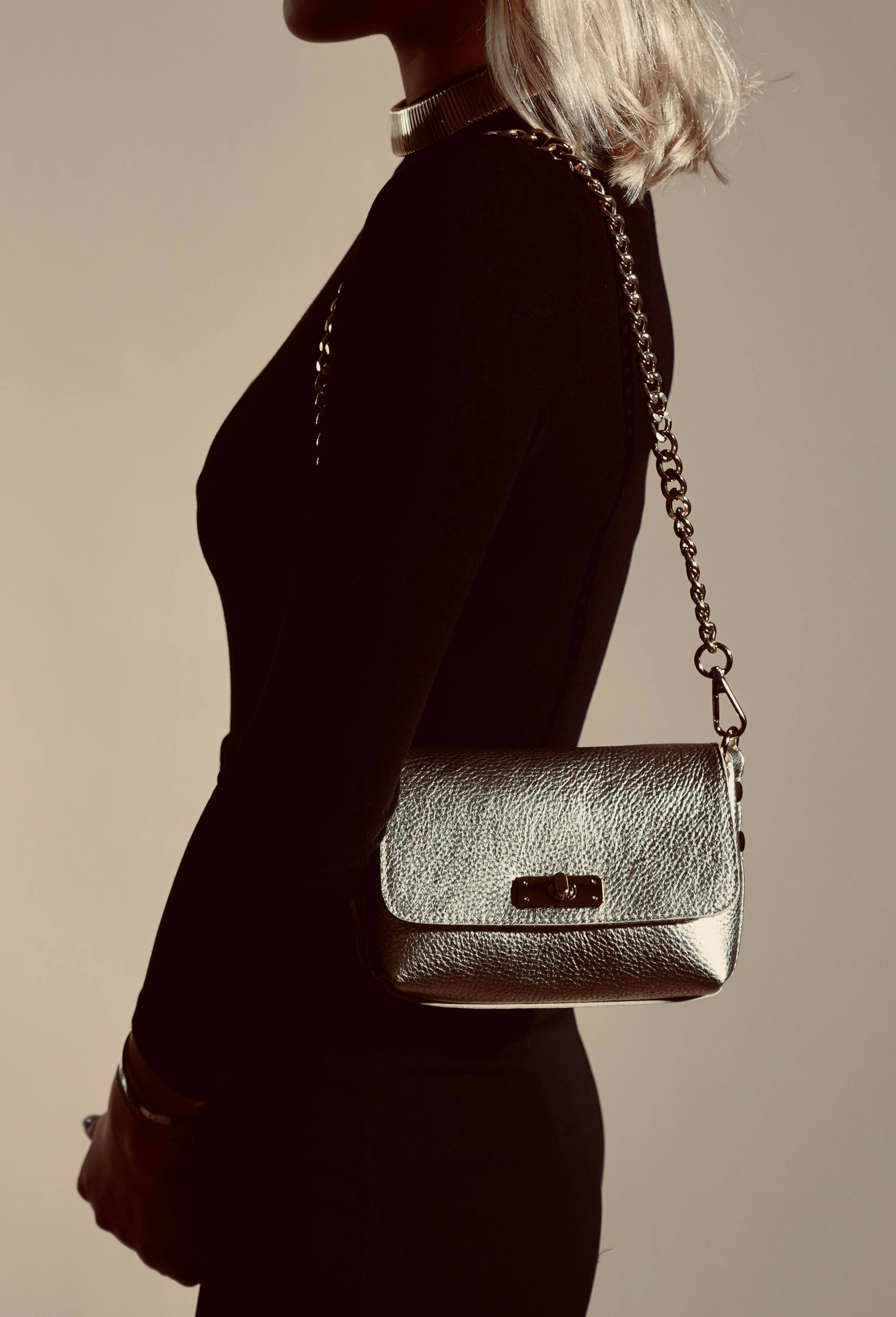 The Bloxsome Leather Crossbody Bag With Gold Chain Strap -