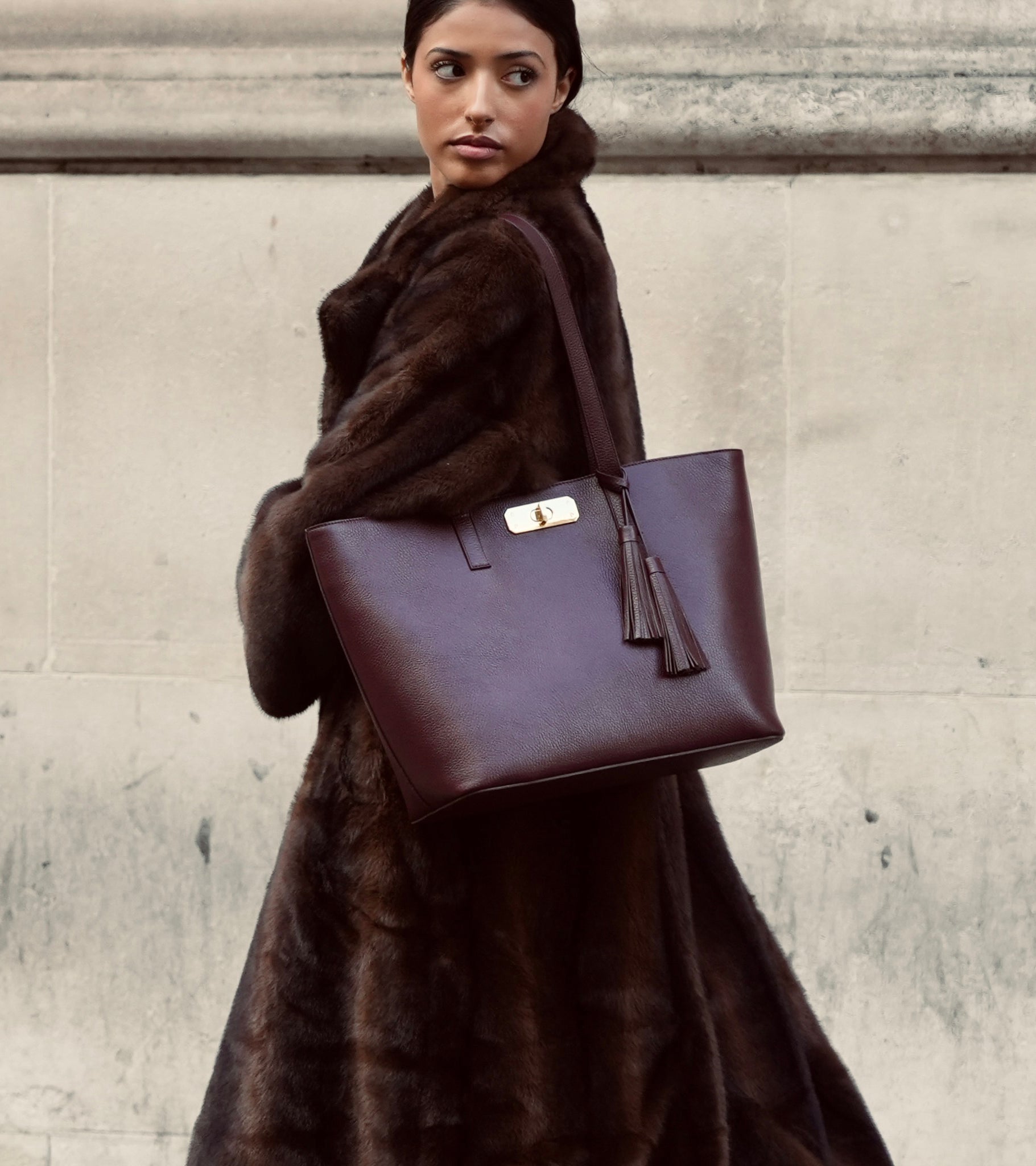Meet The Kate: supple pebble-grained leather, a softly structured shoulder silhouette, and our signature gold-tone twist-lock clasp. Spacious, organised, and effortlessly refined.