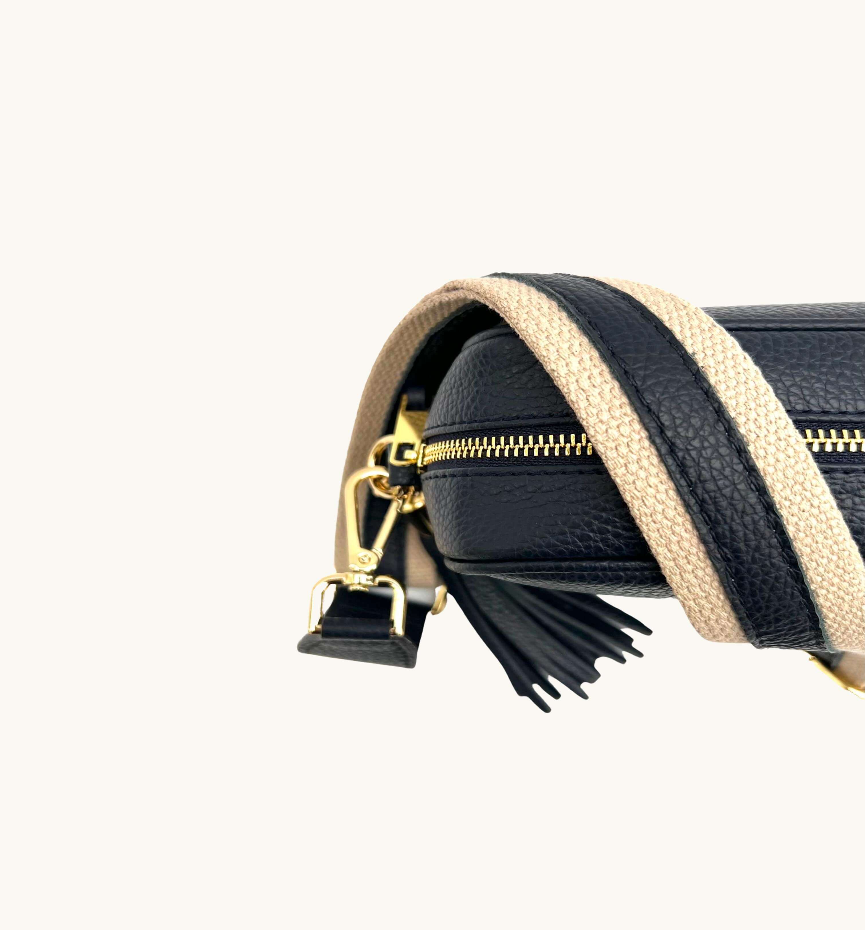The Tassel Leather Crossbody Bag With Leather & Canvas Strap