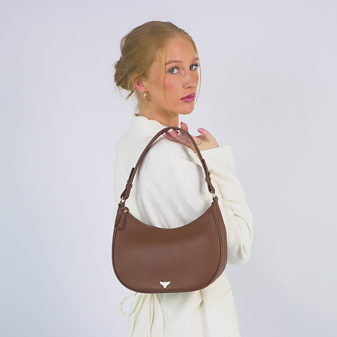 - Graceful crescent silhouette that fits comfortably under the shoulder