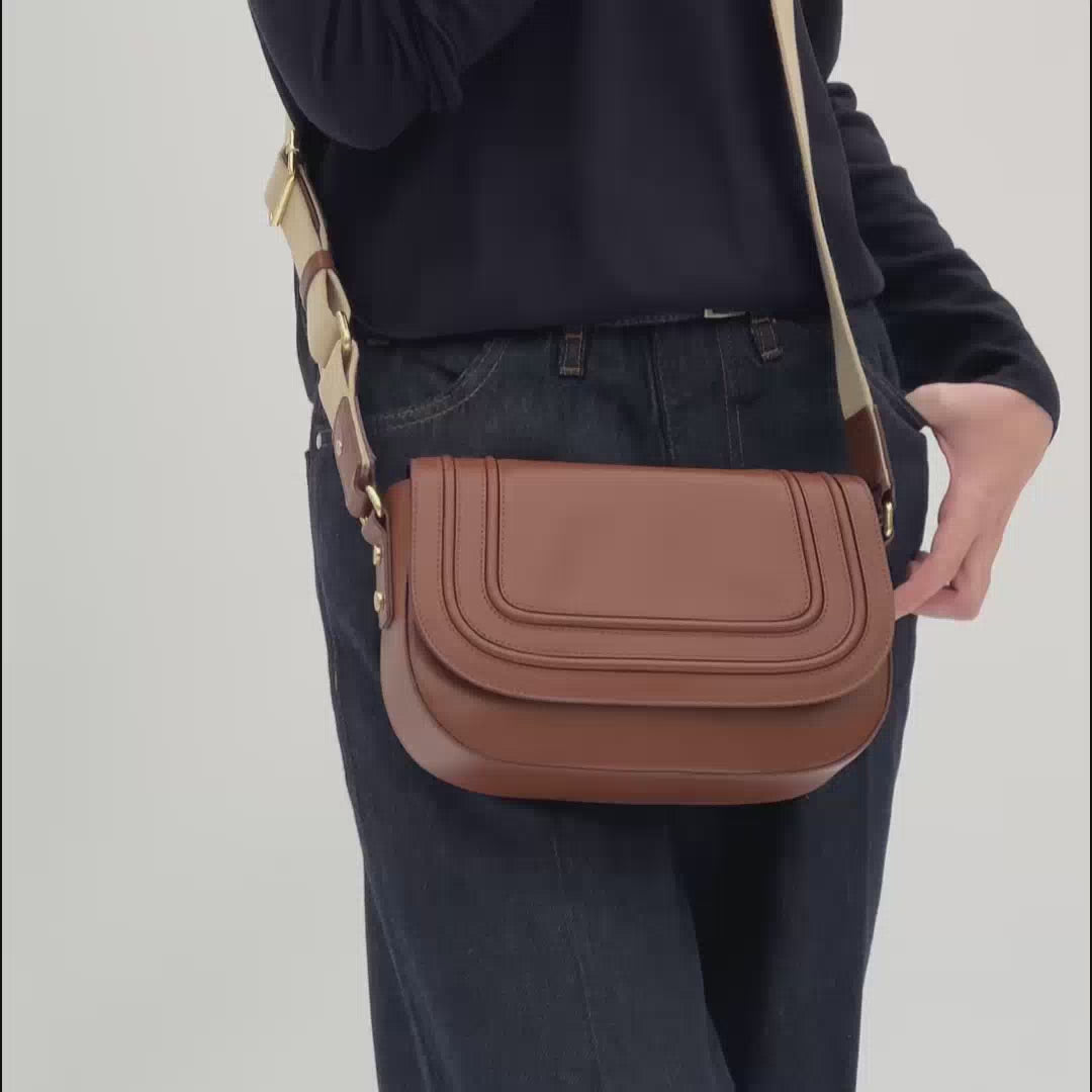 Featuring clean, rounded lines and delicate saddle stitching, the Mimi Midi offers a refined yet approachable look. The adjustable canvas strap provides versatility, allowing for comfortable shoulder or cross-body wear.