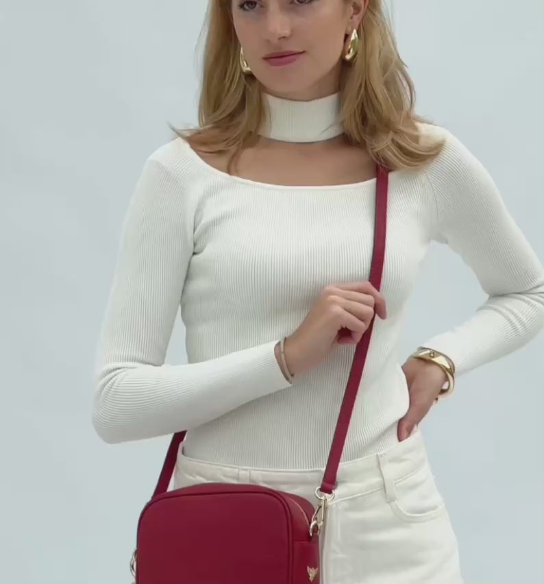 Camera bag made in Italy. 100% leather. Full zip closure.