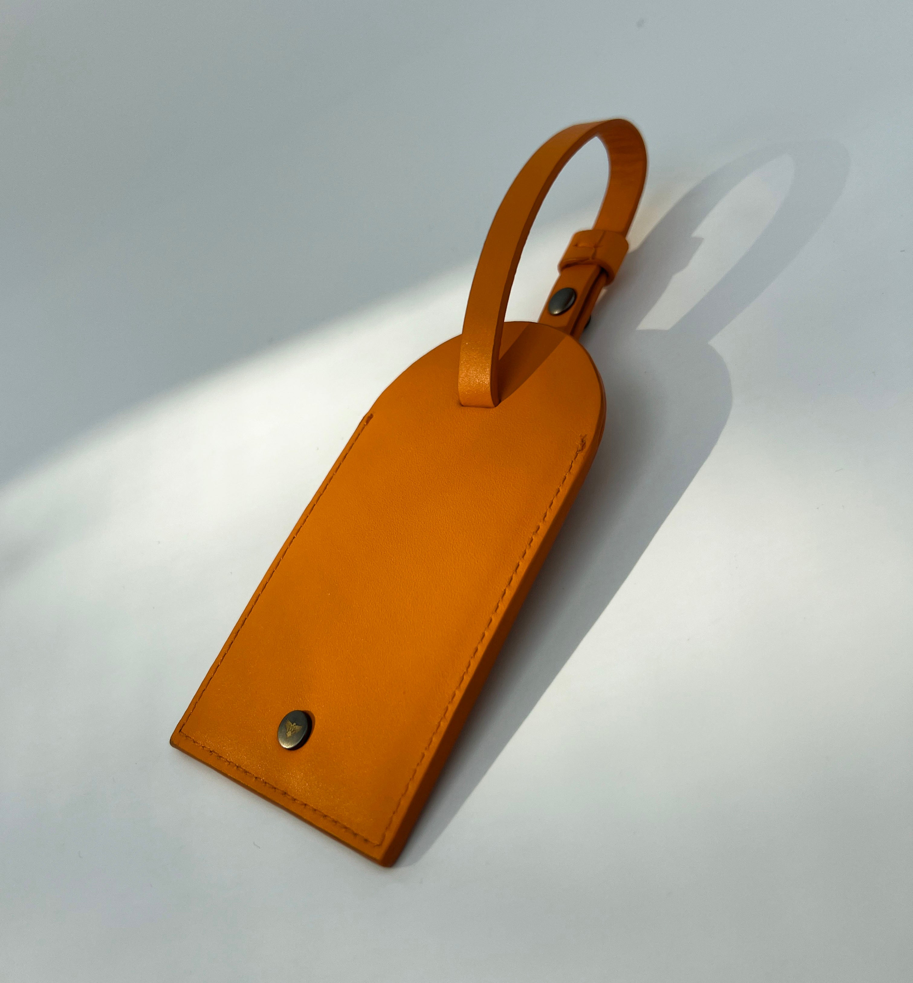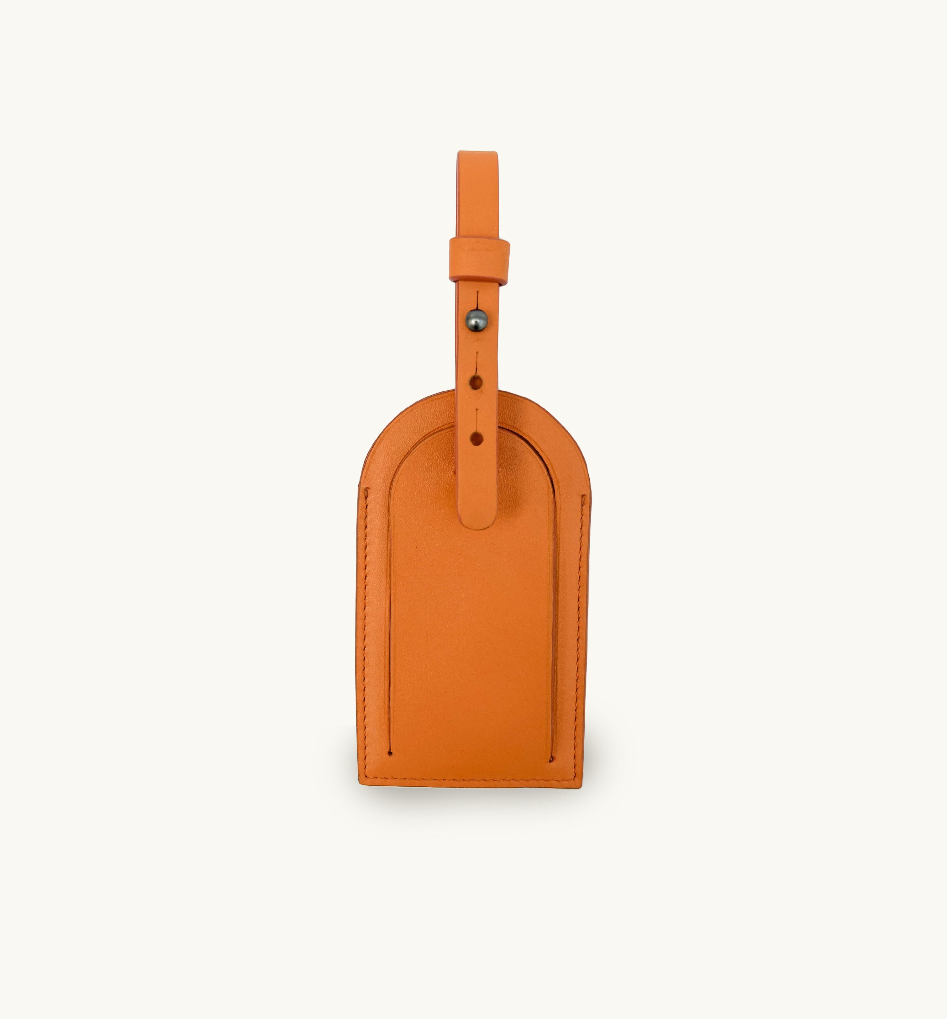 Orange leather luggage tag and Loop Keyring, made from 100% leather.