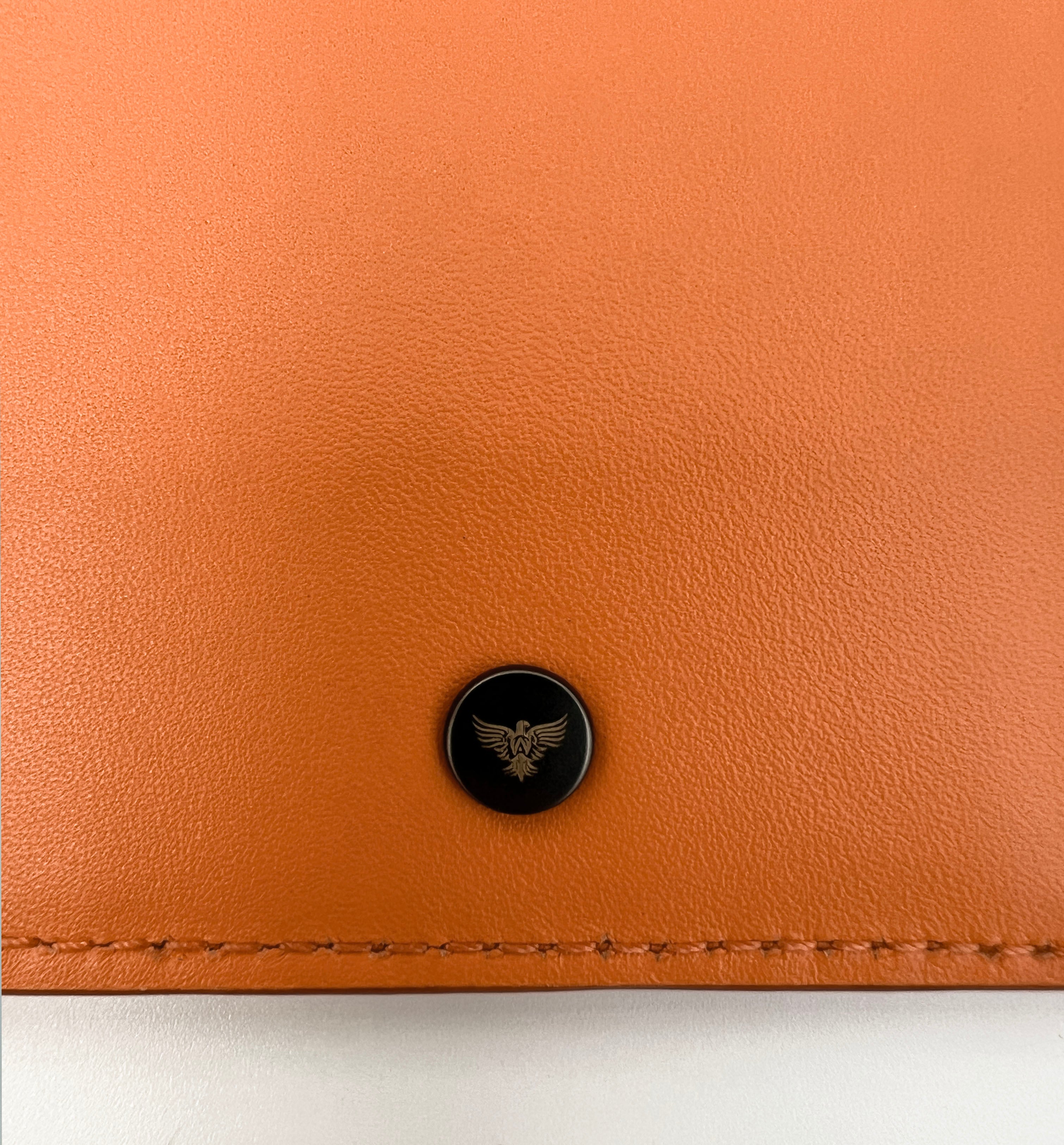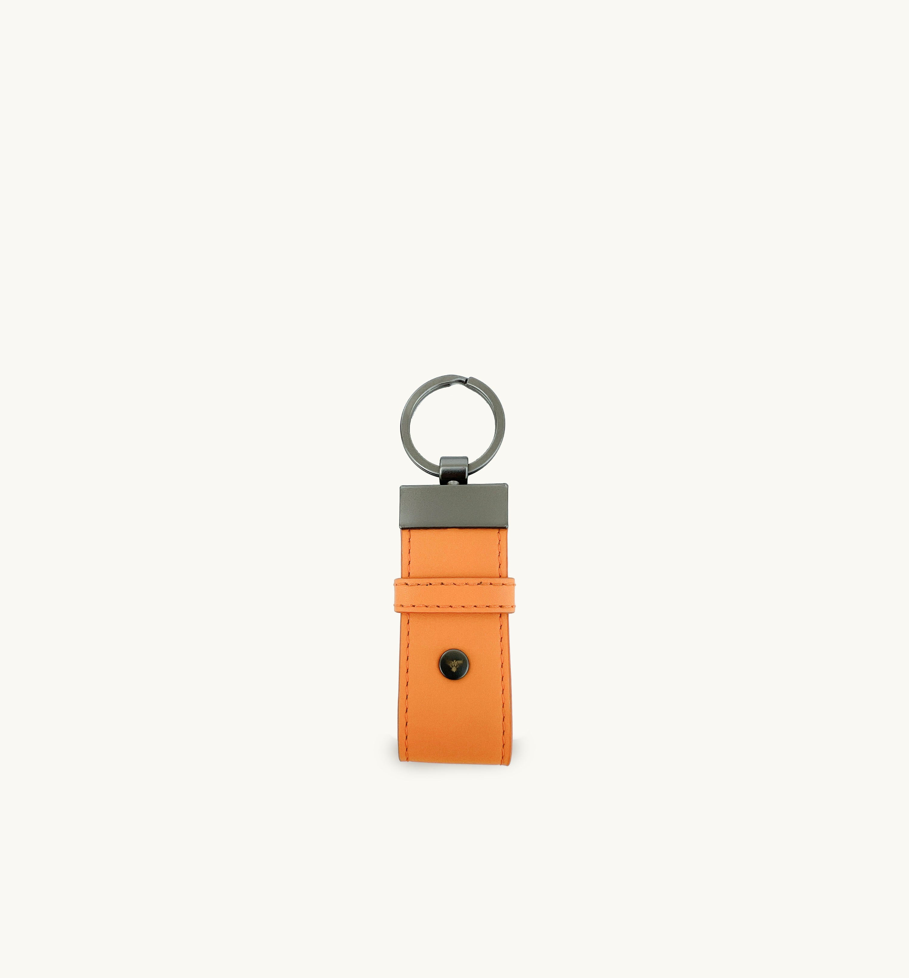 - Orange leather loop keyring with sleek gunmetal grey hardware