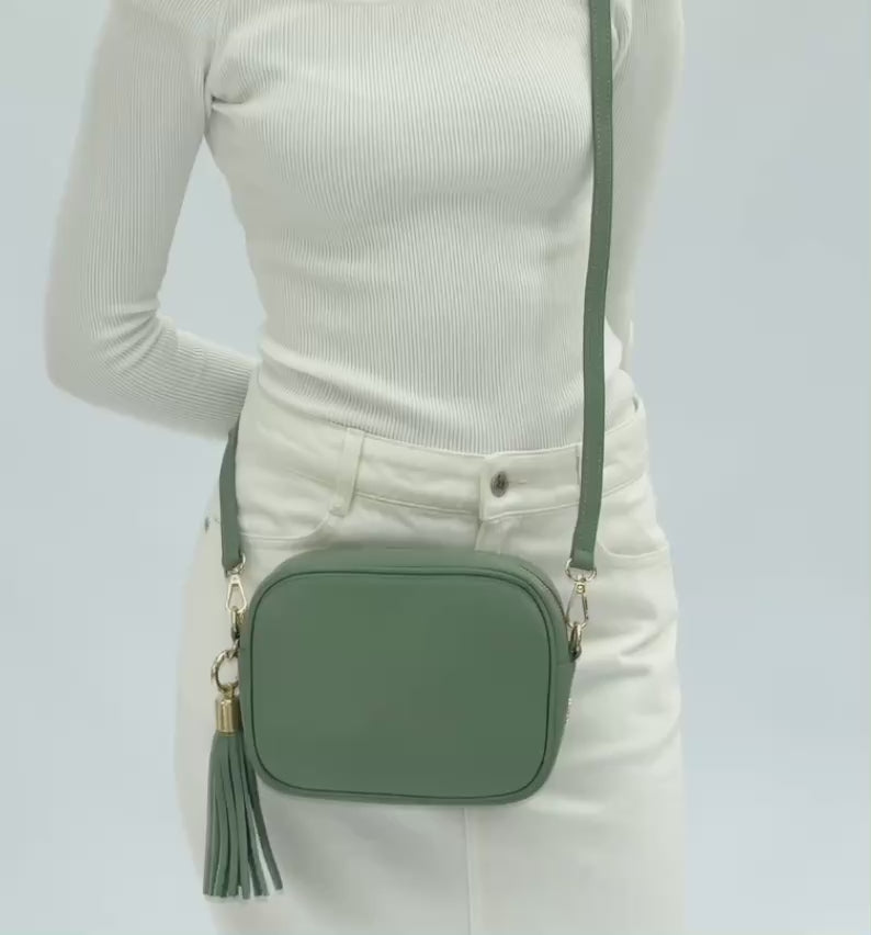 Camera bag made in Italy. 100% leather. Full zip closure.