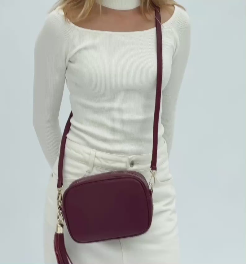 - Soft burgundy leather enriched with a tasteful tassel accent