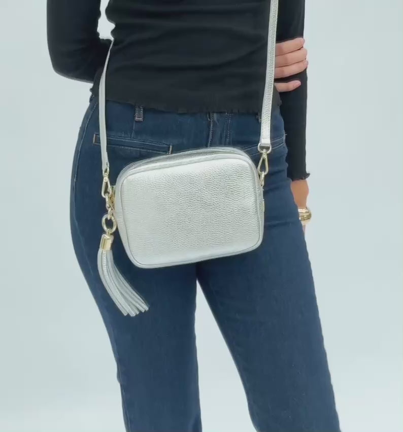 The Tassel Leather Crossbody Bag With Black & Silver Chevron Strap