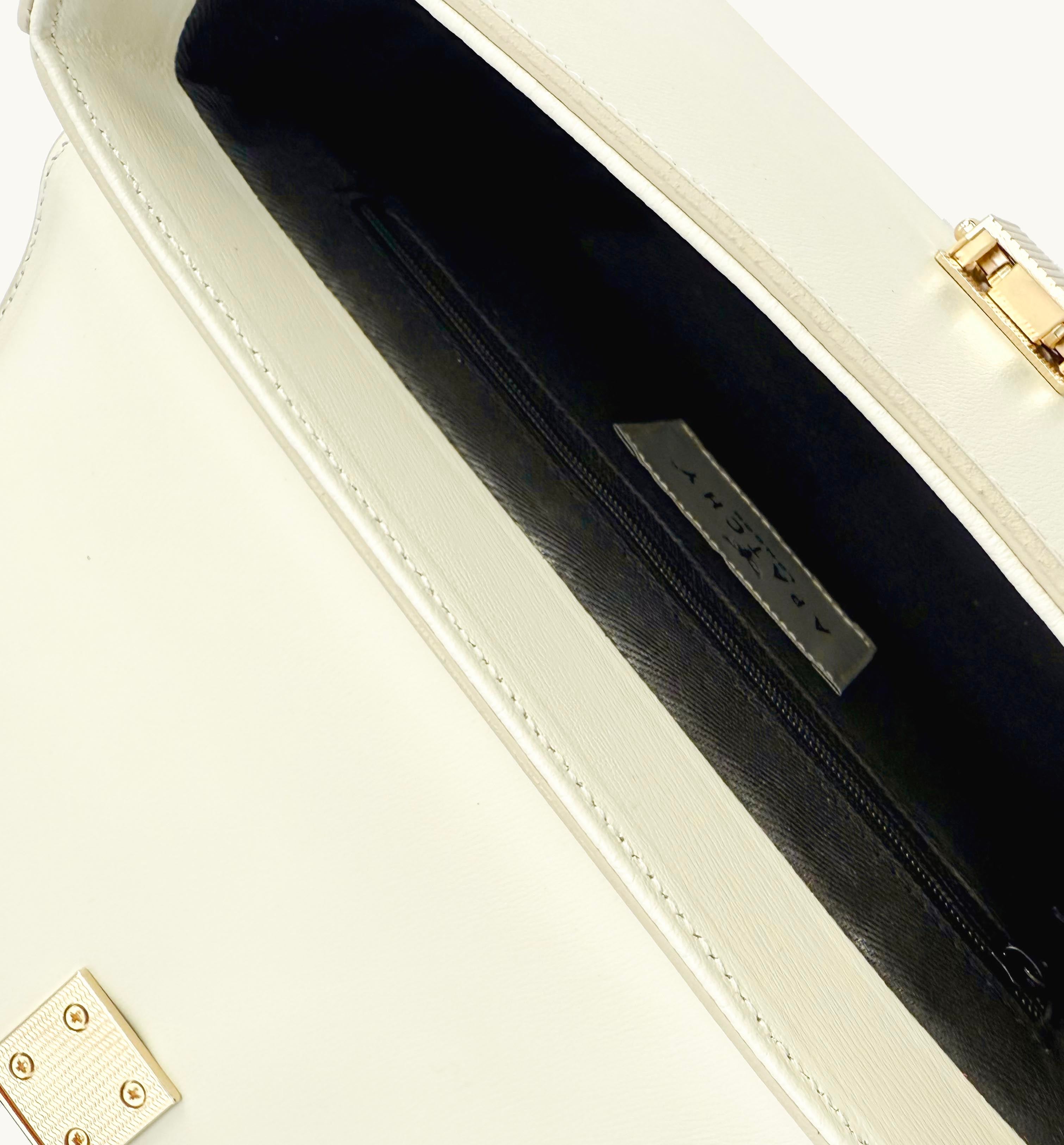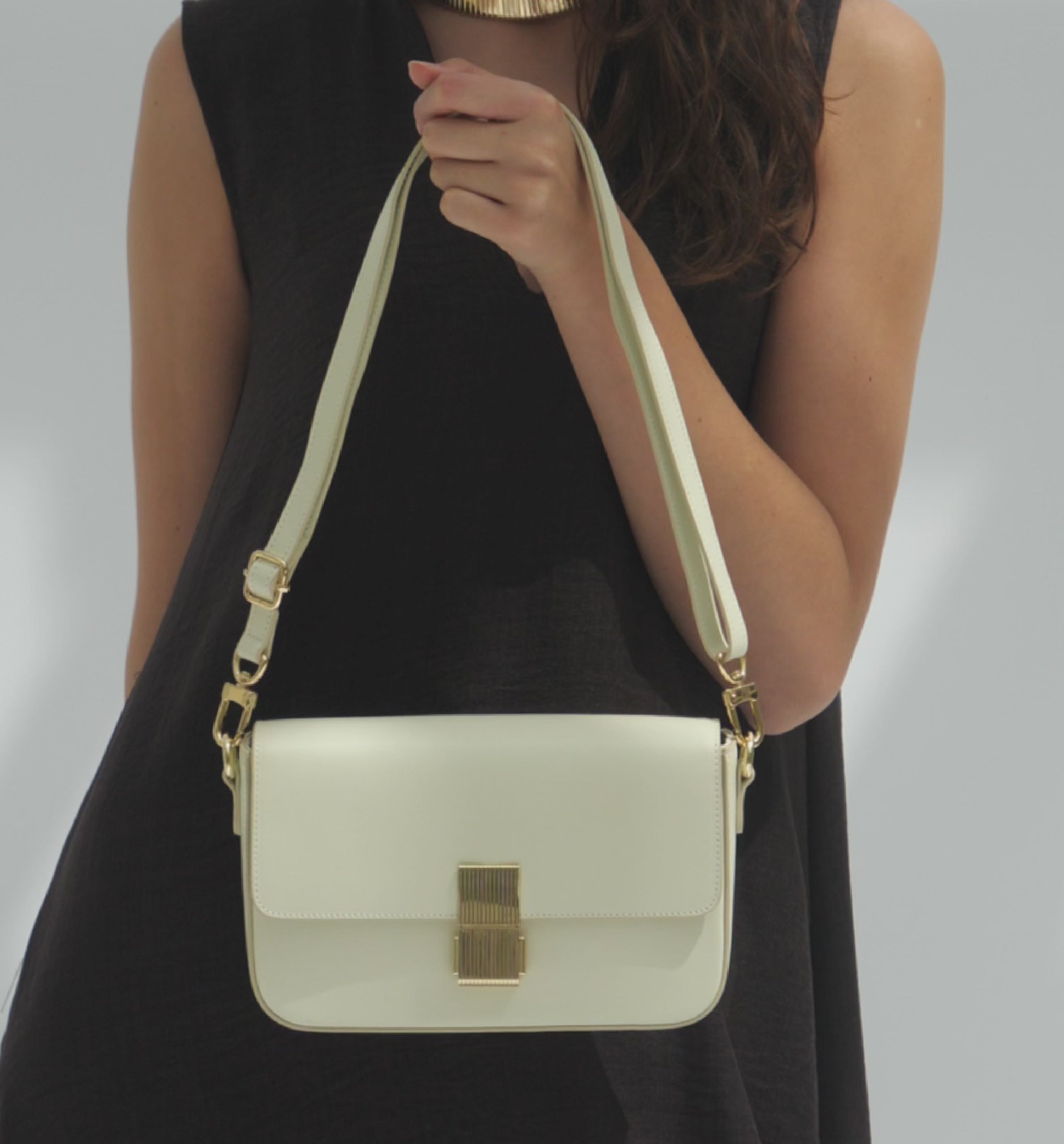 - Adjustable shoulder strap with golden hardware