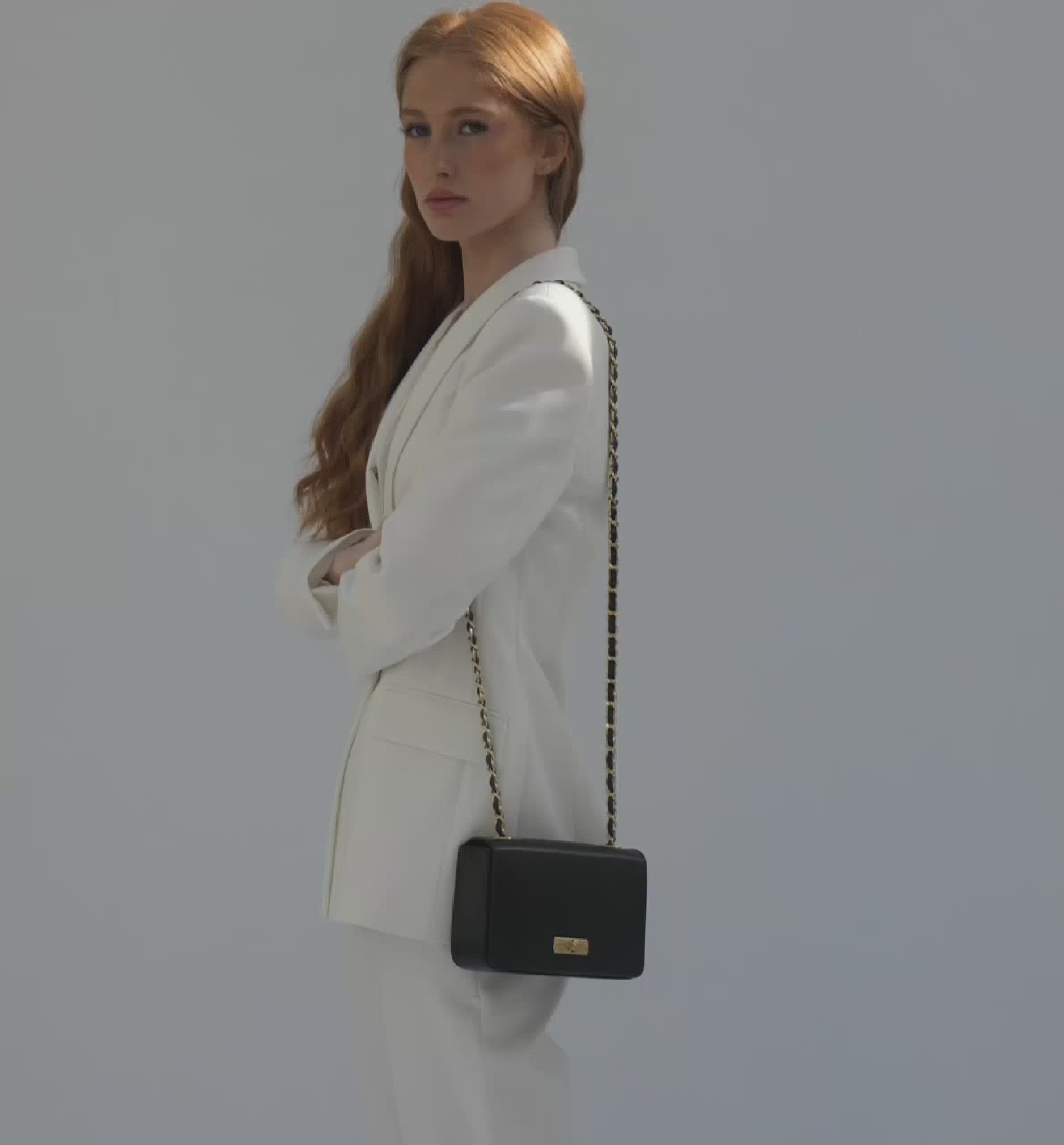 The Grace leather chain strap bag is made in Italy. 100% leather. Twist lock clasp.