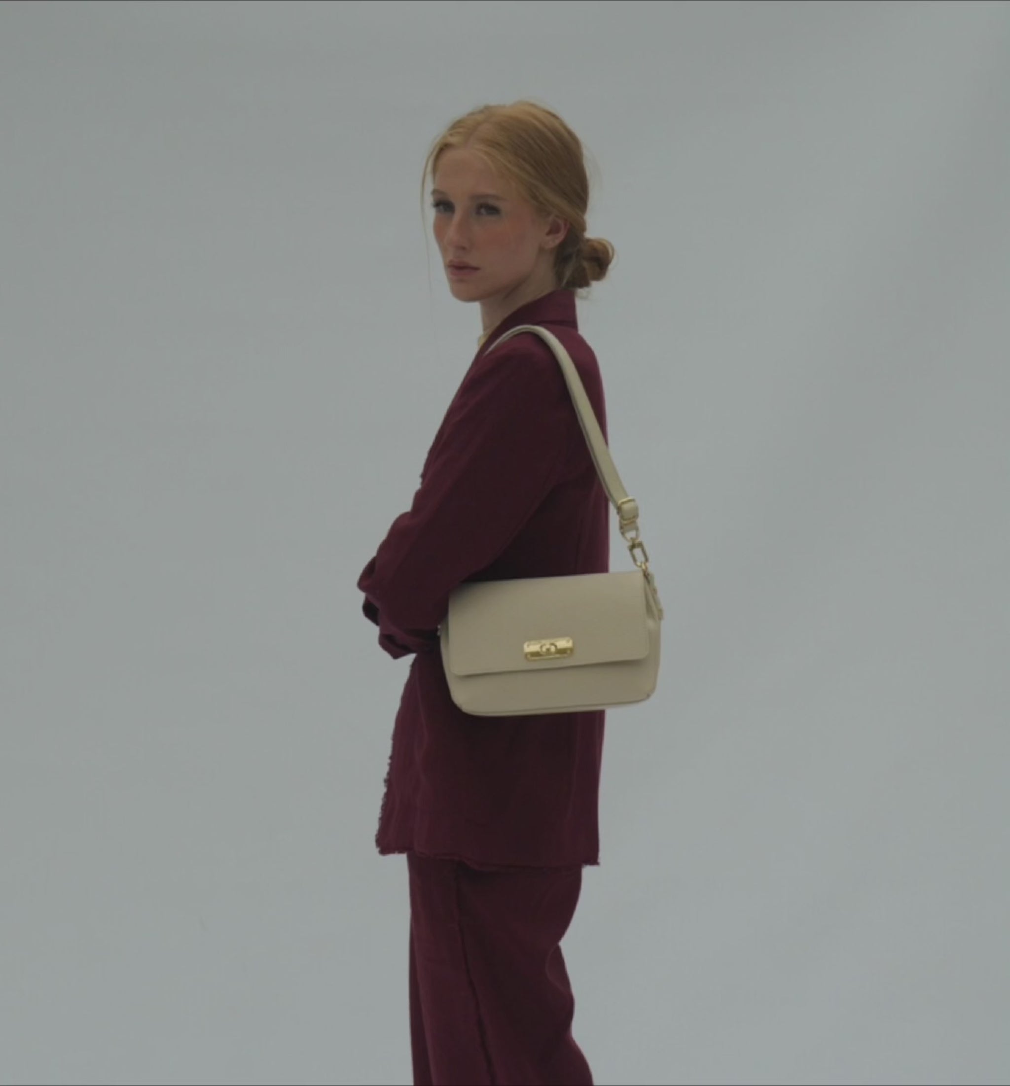 The Maisie Midi bag is made in Italy. 100% leather. Twist lock clasp.