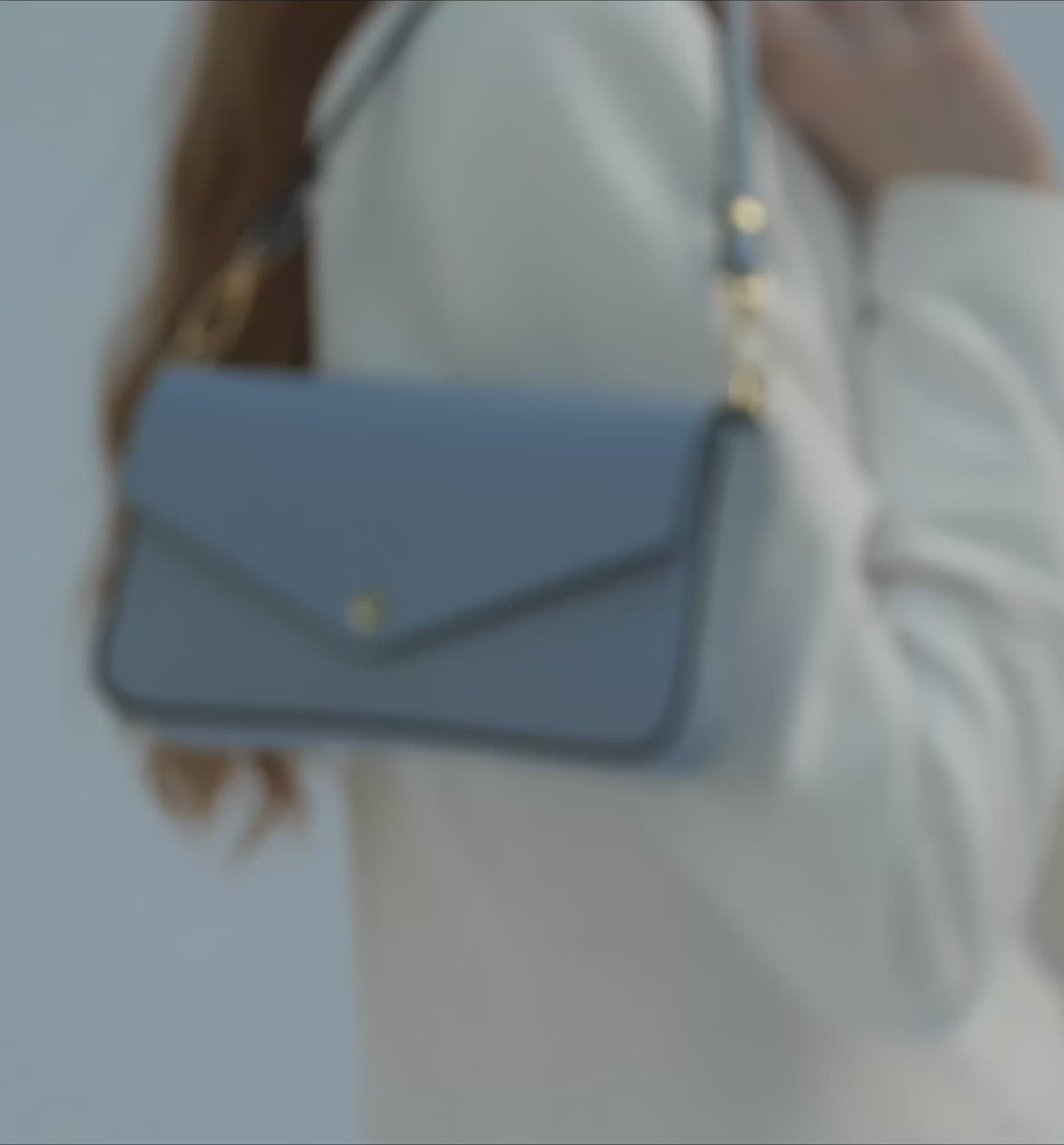 - Features removable leather strap and gold chain crossbody strap