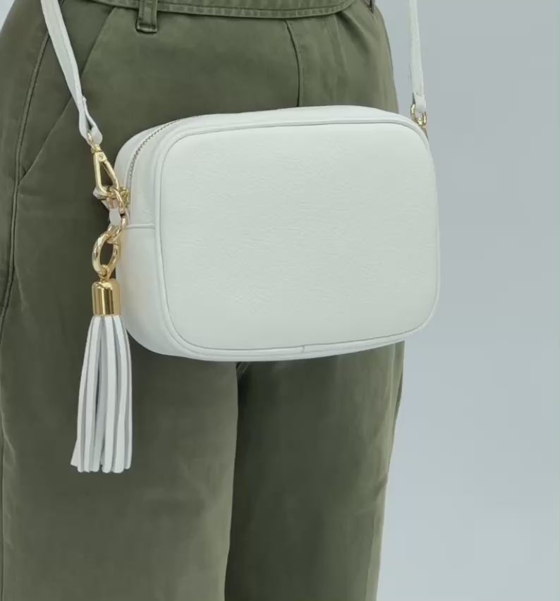 The Tassel White Leather Crossbody Bag With Gold Chain Strap